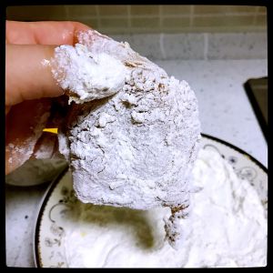 食材: 鸡胸肉、烤肉料、裹炸粉、鸡蛋。厨具:空气炸锅。