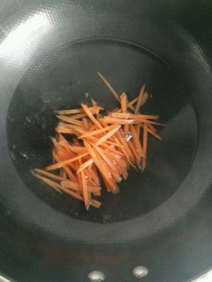 胡萝卜切丝,开水焯断生,捞出过凉水