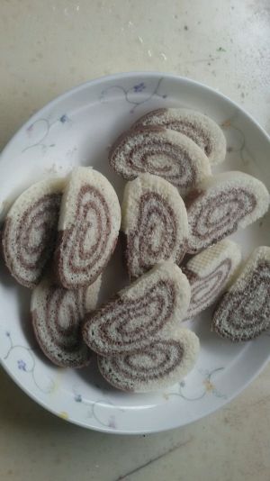 面粉發酵好,揉成兩個部分,再重疊卷起,切好