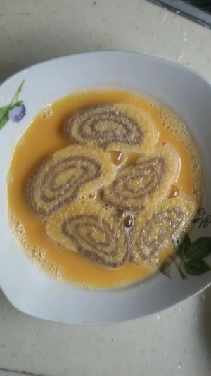 鸡蛋打散,放入适量糖拌匀,再放入馒头片,正反面都裹上鸡蛋液为止。如果喜欢蛋味浓一些的也可以将馒头片在蛋液里压一压,让蛋液充分渗入馒头片。