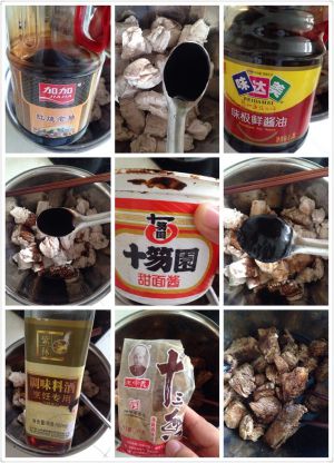 淤好洗好的排骨进行腌制,老抽1小勺,味达美3小勺,甜面酱一勺,料酒根据肉多少而放,料酒主要起到去腥味,十三香自己看着放哦。