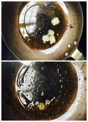 炒锅内放一大匙油,加入切碎的蒜头,煸炒一会