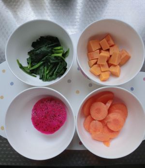 所选果蔬如图,也可以用别的,真后悔没买到紫薯,紫色太漂亮啦