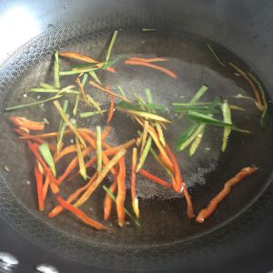 把调好的酱汁和青红椒丝、鸡丝一起翻拌均匀即可(特别鲜香)