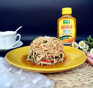 调料汁浇到鸡丝上,这道菜就做好啦,吃之前拌匀哦