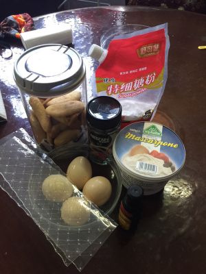 蛋糕模铺满手指饼干后,倒入一半的马斯卡彭芝士糊后,再铺一层蘸好咖啡酒的手指饼干,再倒入剩下的芝士糊,把蛋糕模放入冰箱冷藏,五至六小时或隔夜,等芝士糊凝固后,脱模。
