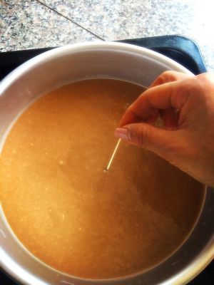 用料里说得统统放进去,搅拌吧,然后用牙签戳气泡