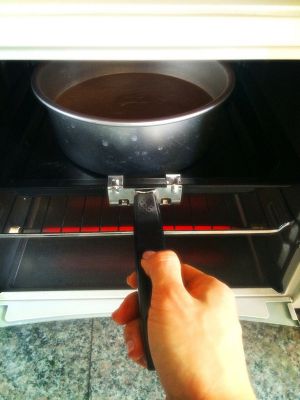 再加入剩下的芝士糊。磨平。再稍微震几下模具。