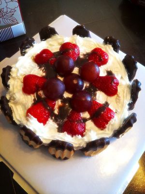 最后倒入搅拌好的马斯卡彭糊,将做好的蛋糕放入冰箱冷藏室里5-6个小时或是过夜。凝固好以后的蛋糕表撒适量可可粉,在周围裹上手指饼干做装饰即可。可以用热毛巾捂一下比较好脱模。