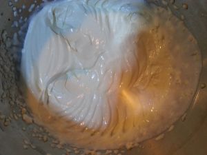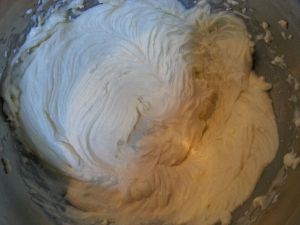 马斯卡朋打好以后和冷却至室温的蛋黄糊融合。