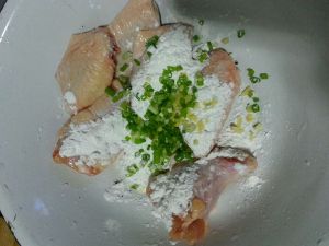 搅拌均匀,撒上鸡翅粉,上锅炸10分钟【看情况】