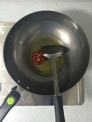炒锅加油,放入辣椒酱,蒜茸,姜片爆香