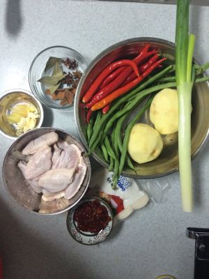 准备花椒,生姜,干辣椒等等。