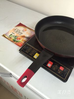 准备干净的煎锅,食用油,还有一片135g的特好嘉月亮虾饼
