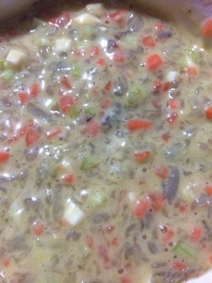 胡萝卜、口蘑、芹菜切碎和虾泥一起搅拌均匀(以上这些蔬菜可随自己喜好添加,个人认为加入荸荠比较好吃)