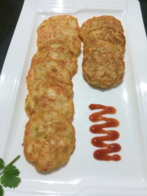 煎至两面金黄装盘,可配些自己喜欢的酱料,当然不配也很鲜美。同样的配料也可以做成豆腐饼,只需把虾换成北豆腐即可。儿子特别喜欢这两款小饼,既营养又易消化,家里有小朋友的妈妈不妨试一试。