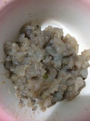 大虾剥壳去虾线,和肥猪肉一起剁成泥,如果不喜欢肥肉也可不放。