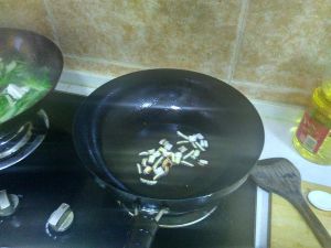 锅放油烧热,放入葱花和姜末爆香,出味后将葱和姜捞出来。