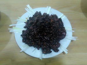 将肉丝下锅翻炒,让肉丝都沾在酱汁上,稍微炒一会,放鸡精炒匀出锅。