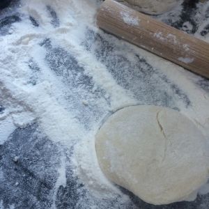 醒好的面擀成面饼 平底锅烧热不加油 将面饼烧到两面都有斑点