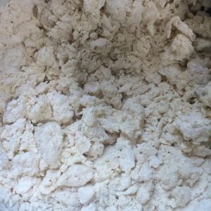 500克面粉加入沸水搅拌成雪花状 开始用手擀成面团 用保鲜纸盖住醒20分钟