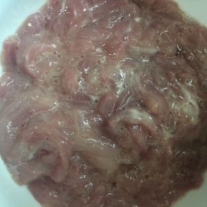 猪肉切成片 片在切成丝 用适量料酒 盐 淀粉一颗鸡蛋清 腌十分钟
