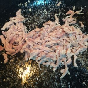 里脊肉切丝,放入碗中加入少量盐和鸡精,在加入料酒,淀粉抓匀腌制10分钟!