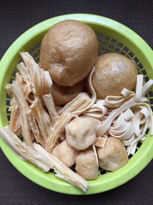 黄豆芽洗净备把面筋切自己喜欢的块各种鱼丸洗净备用