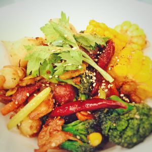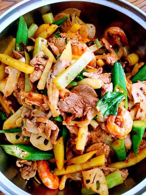 香锅出炉,大家喜欢什么食材就放什么,炒出来都是麻辣鲜香的,配上米饭很不错,动手自己做香锅吧