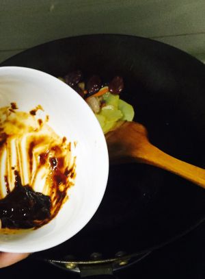 加入麻辣香锅底料、豆瓣酱、蚝油