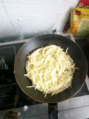 土豆削皮洗净,插丝以后,不要过滤水!不要过滤水!不要过滤水!重要的事情说三遍!!!因为土豆里面有淀粉,一冲水就冲没了!!也可以在加一勺淀粉!不过淀粉可有可无。