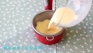 把布丁液过筛两次。