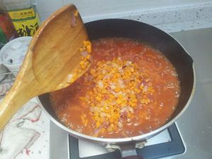 炒至西红柿软烂,出汁,有做好的番茄酱,这个时候也可以加入一些