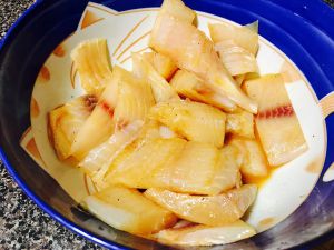 乌鱼超市买的,杀好给切成两片了,回来自己再切斜刀片(刀一定要够锋利,我今天切的想哭)
