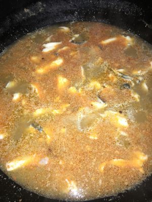 这时候把鱼头跟自己喜欢的底料一起下去煮熟了,先捞起来放另一个锅底备用