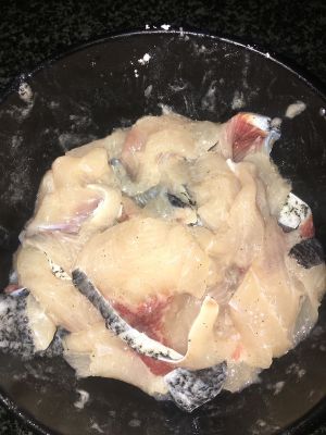 腌制鱼片:料酒、生粉、盐可以多放一些、黑胡椒、蛋清、(想让肉嫩一点可以放一些嫩肉粉)