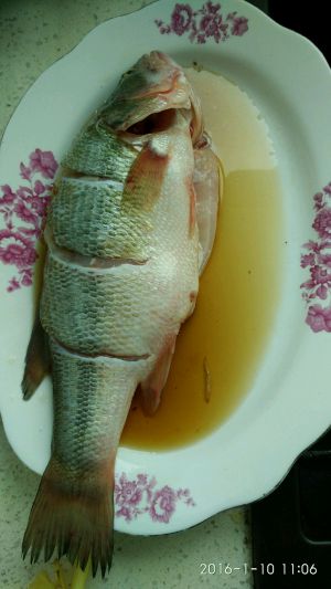鱼清理干净,把鱼身上的鱼线取出,鱼身切刀,加入料酒,生姜,大蒜等腌制