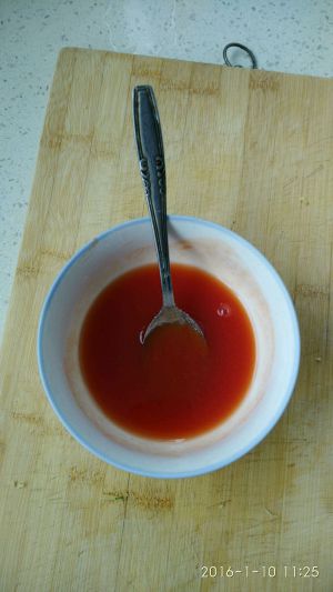 适量甜酸酱,加糖。糖的份量根据个人口味选择。调匀。