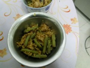 做法2:红烧肉豆角焖饭
