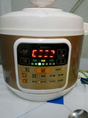 放入电饭锅里,按肉,焖饭开始,别忘记放水哦(⊙o⊙)哦,嘿嘿嘿,跟焖饭一个步骤