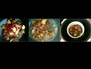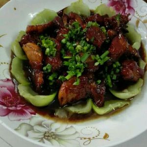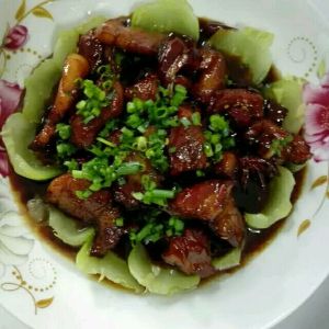 至于盐,出锅的时候在加。因为笋干本身是咸的,要充分发挥自己的舌头,尝后酌量加。将烧好的肉装入南瓜里,上锅蒸。时间自己看着办,参考意见是30分钟左右。