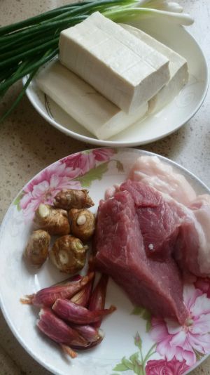 准备材料豆腐最好用盐水煮一下,这样豆腐不容易碎而且好吃。