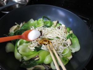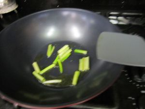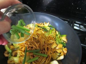 最后放入葱段,用筷子一边搅匀一边将面打散,使所有的调料进到面条里面去,即可关火。