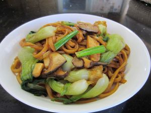 一盘香喷喷能勾起你食欲的蚝油菇蔬炒面,可以装盘享用啦。