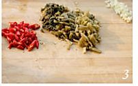 腌菜切小段,小米椒斜切段,大蒜切末;