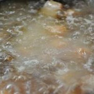 起热锅加油,油热放土豆加适量盐炒至变色盛起留用。