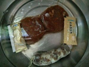 看起来都是肉,只是蔬菜颜色太浅,洋葱黄瓜都是不吃要坏了的,将就着看吧。