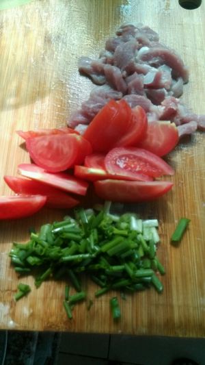 面条煮好 倒一点点油 防止粘住 鸡蛋先要煎一下备用 其他的配料切好