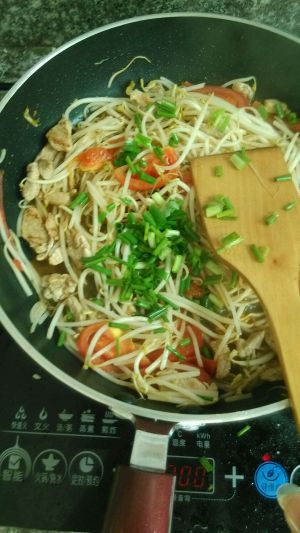 倒入面和生油快速翻炒,起锅前放入葱花装盘。