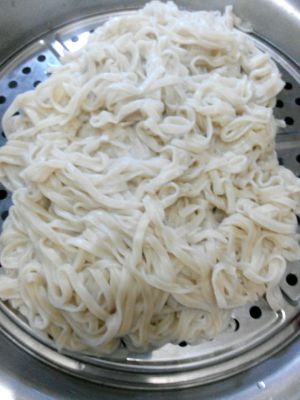 超市买的熟面条。如果家里有生面条,可以直接上锅蒸半小时。